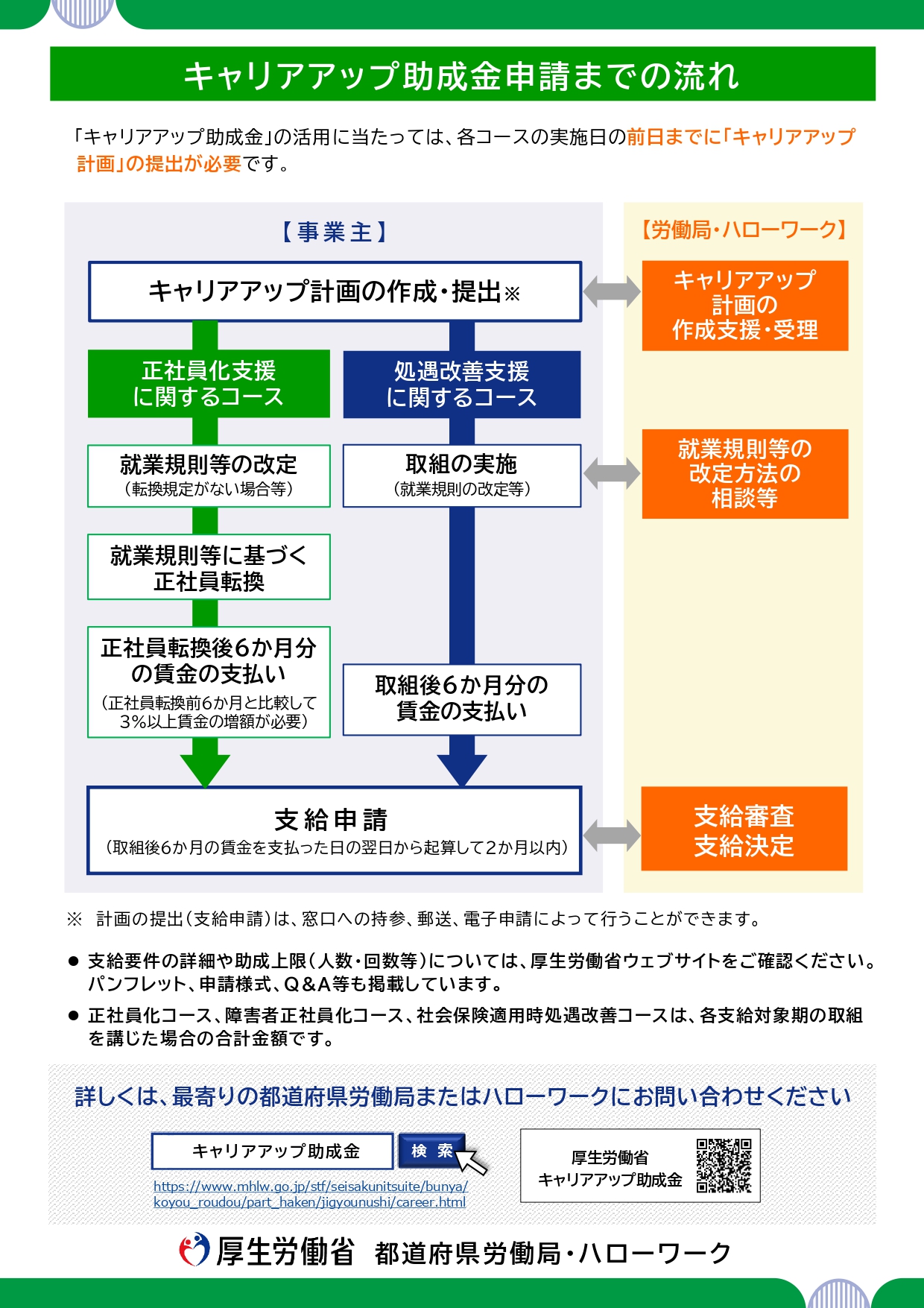 - 順番が命です! 必ず「事前に」計画を提出し、会社のルールを整えてから、正社員に登用する必要があります。「すでに正社員にしてしまった」後では、原則として助成金はもらえません。