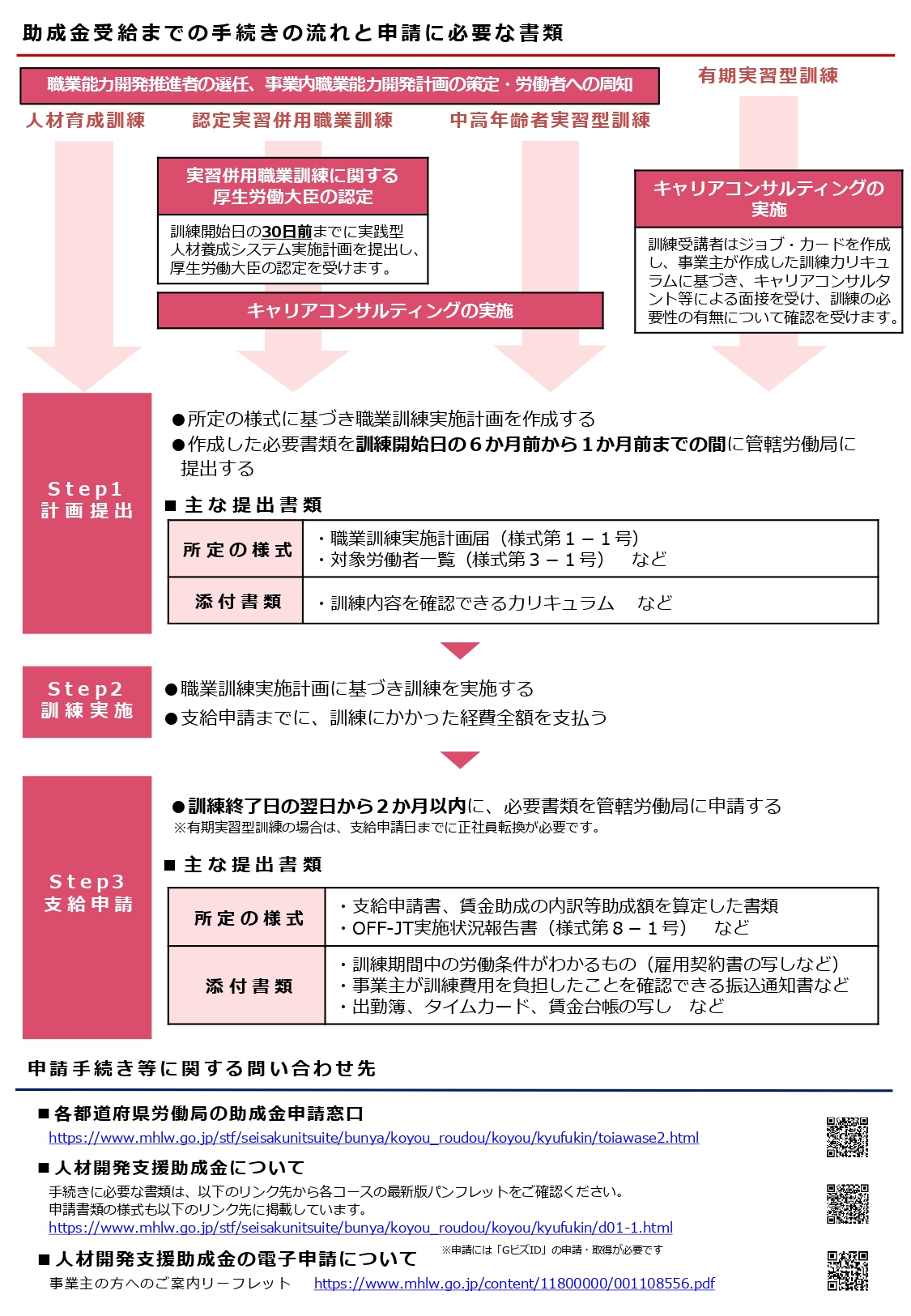 研修が始まる「1か月前まで」に、労働局へ研修の計画書を提出します。 - 研修の実施と費用の支払い