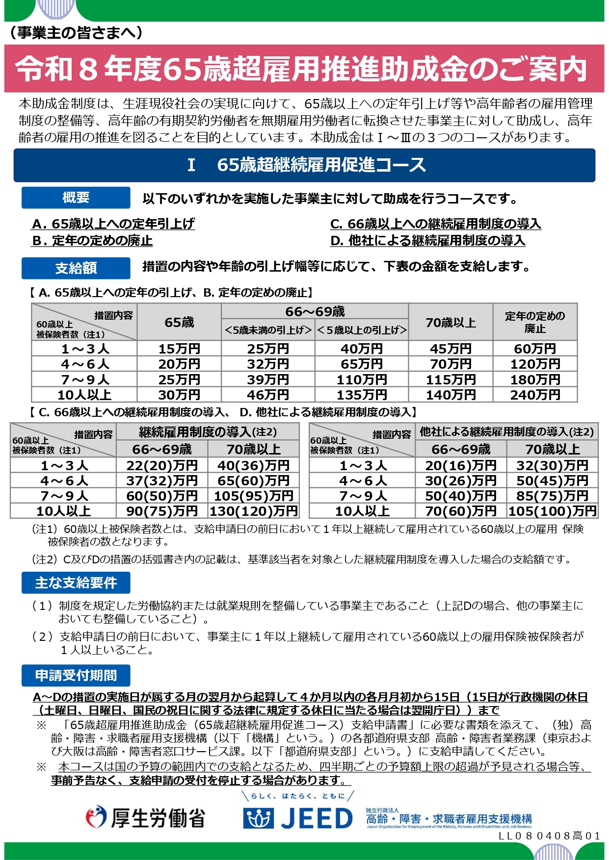 ・定年の引き上げ・廃止の場合:15万円 〜 最大160万円